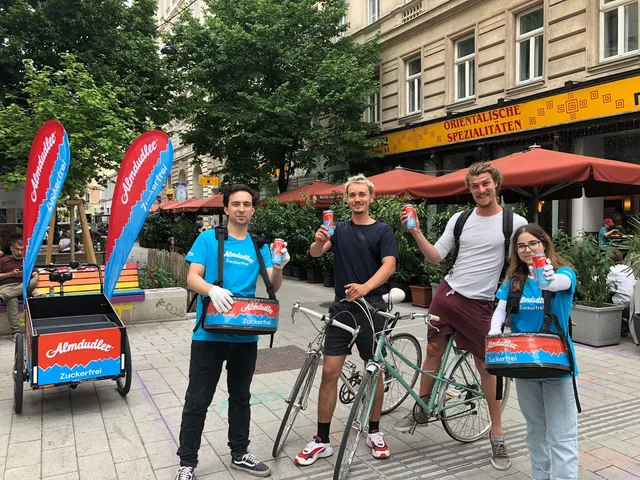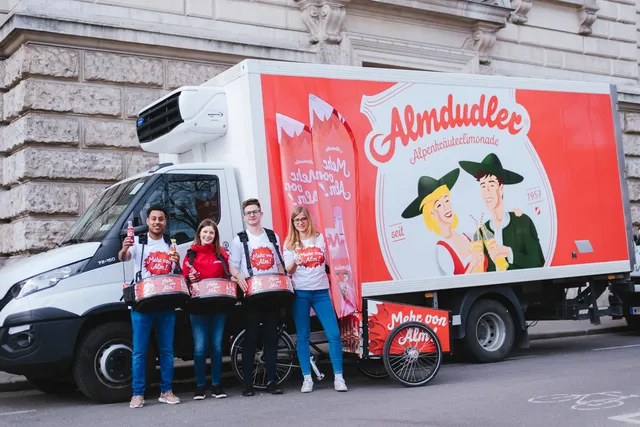 Warum unsere Promotions genauso viel bewegen wie groß angelegte Kampagnen? Weil auch kleine Gesten große Wirkung haben. Sogar bei der Ausgabe von kleinen Kostproben – top gekühlt bei 35° im Sommer – sind unsere Promotoren echte Markenbotschafter und machen den typischen Almdudler Schmäh als Brand-Feel Face-2-Face erlebbar.