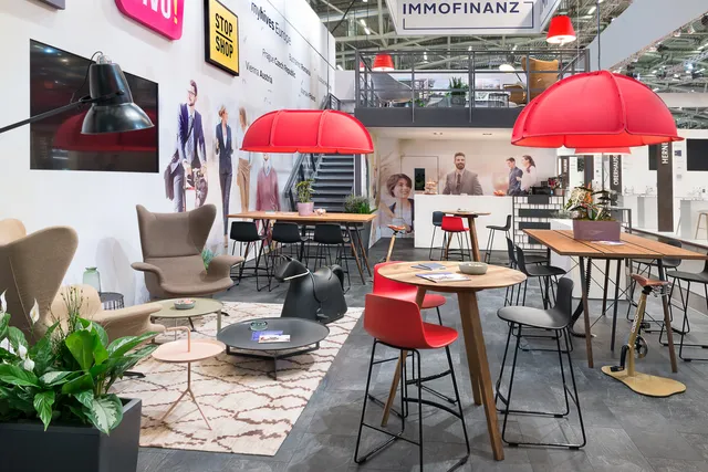 Warum stellen wir auf einer Messe in München eine Büro-Lounge aus? Weil es für Eindruck sorgt! Das typische Interior-Design der Office-Marke von IMMOFINANZ, myhive, ist EU-weit bekannt. Ikonisch, stylisch und gemütlich zugleich: der perfekte Platz für B2B Gespräche mit potenziellen Partnern relevanter Branchen für die Dachmarke - von Büroangeboten bis hin zu Retailflächen.