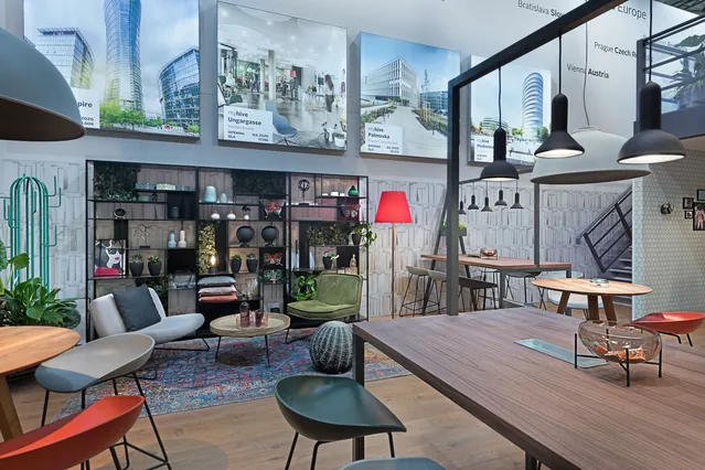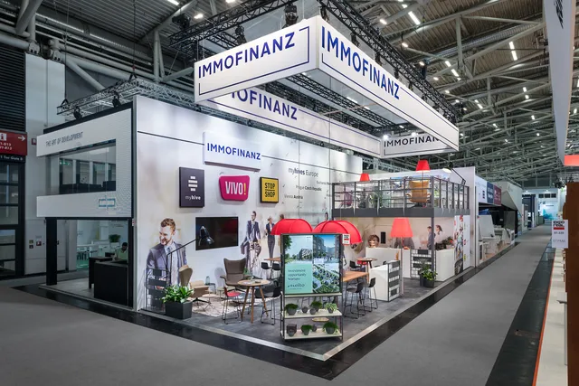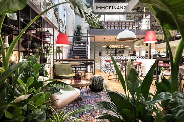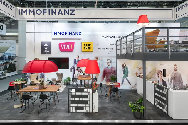Warum stellen wir auf einer Messe in München eine Büro-Lounge aus? Weil es für Eindruck sorgt! Das typische Interior-Design der Office-Marke von IMMOFINANZ, myhive, ist EU-weit bekannt. Ikonisch, stylisch und gemütlich zugleich: der perfekte Platz für B2B Gespräche mit potenziellen Partnern relevanter Branchen für die Dachmarke - von Büroangeboten bis hin zu Retailflächen.
