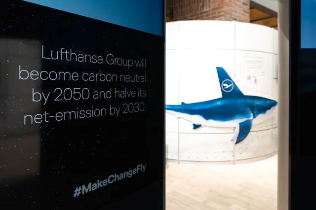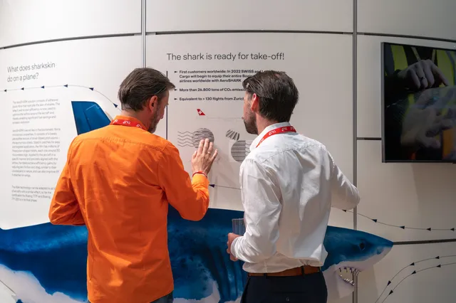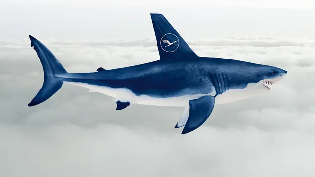 Was Haie mit Flugzeugen zu tun haben? Ganz einfach! Sie sind Teil unseres Kommunikations-Konzepts für die DLD Conference rund um die Nachhaltigkeitsstrategie der Lufthansa Group und stehen für aerodynamische, treibstoffsparende Flugzeug-Folien, inspiriert durch die Hautoberfläche von Haien.